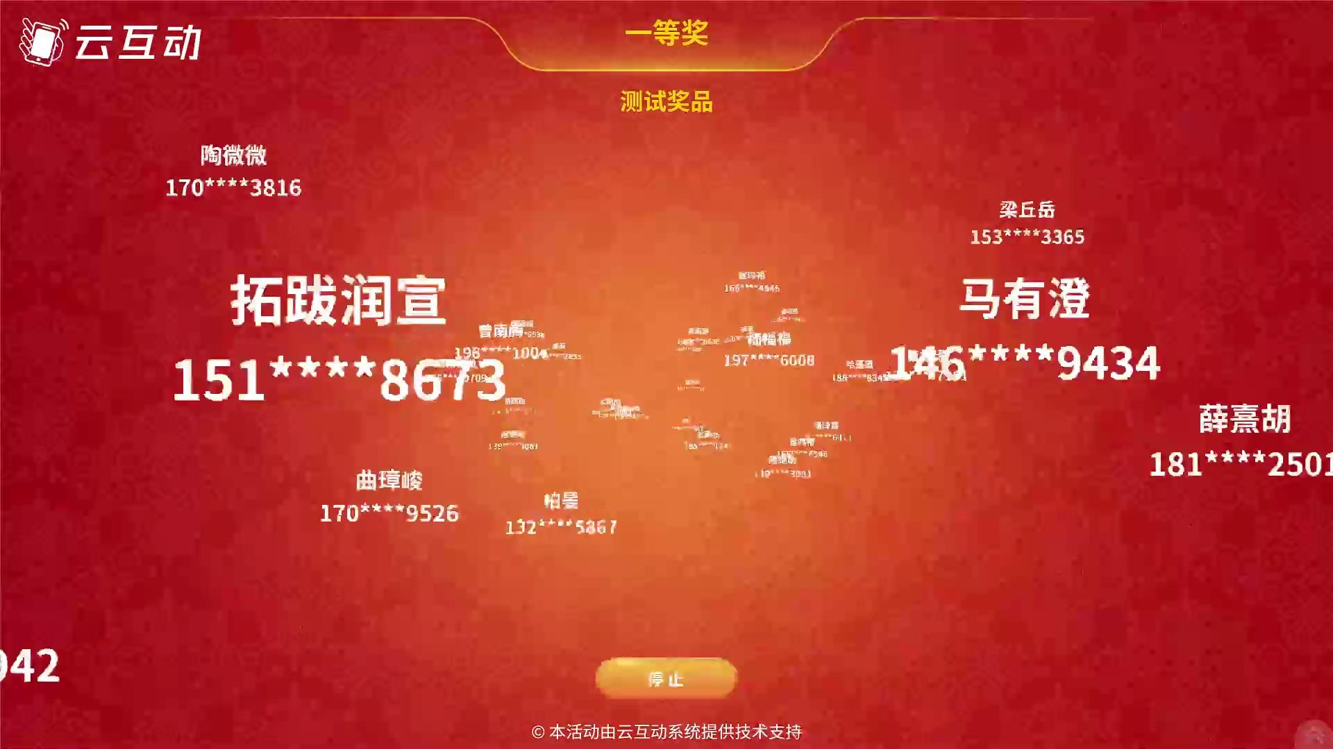 主持人倒數(shù)“3、2、1,停!”——點擊停止,中獎?wù)咚查g定格在大屏上!